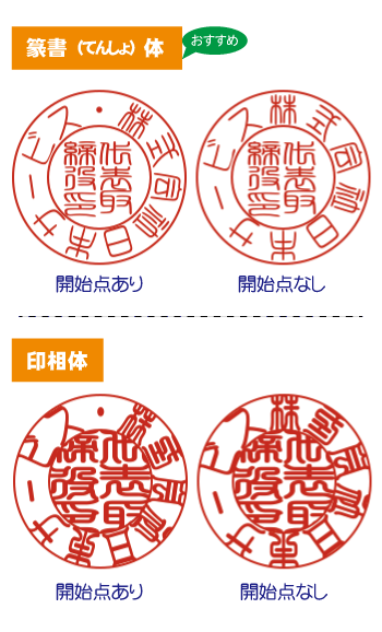 | 書体 | 篆書体(てんしょたい)、印相体(いんそうたい)からお選びいただけます。