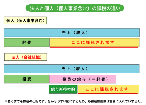 個人(個人事業含む)の場合、売上(収入)から経費を引いた金額に対して課税されます。「事業主の給与」という概念はありません。